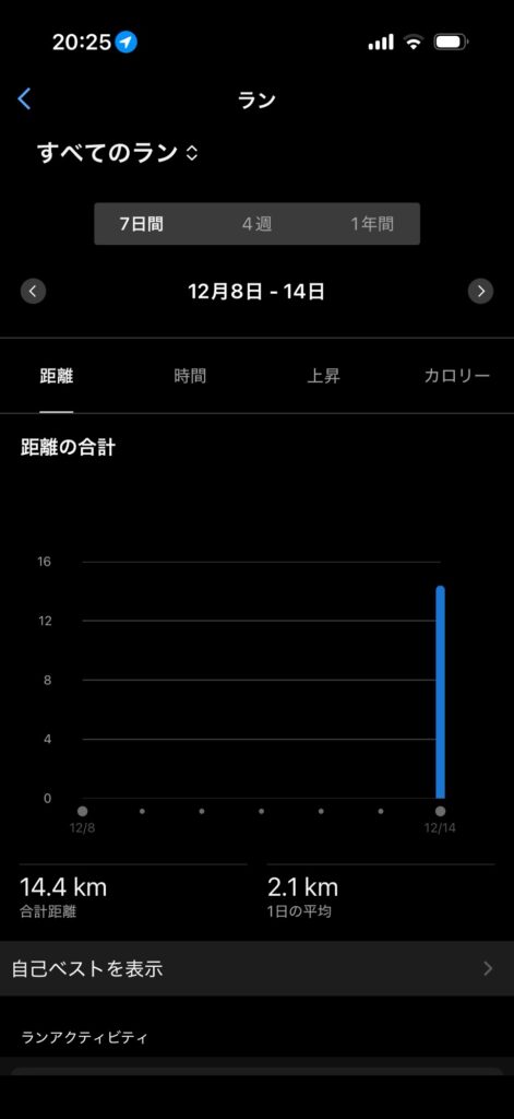 週間ランニング距離 14.4km