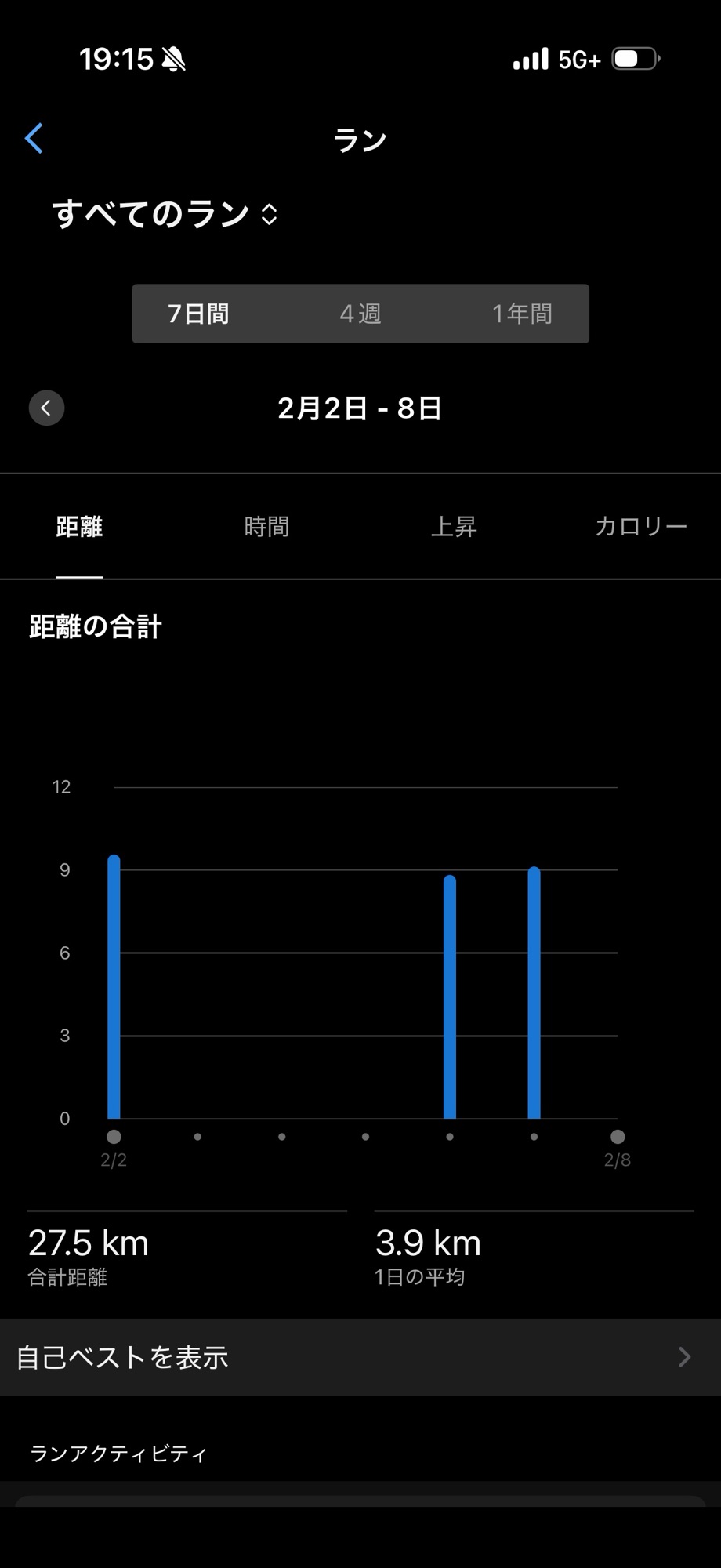 週間ランニング距離:27.5km