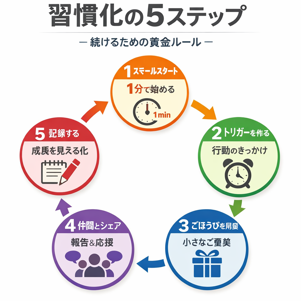 これら5つの技術は、行動科学で実証されている 「習慣化の黄金ルール」 です。