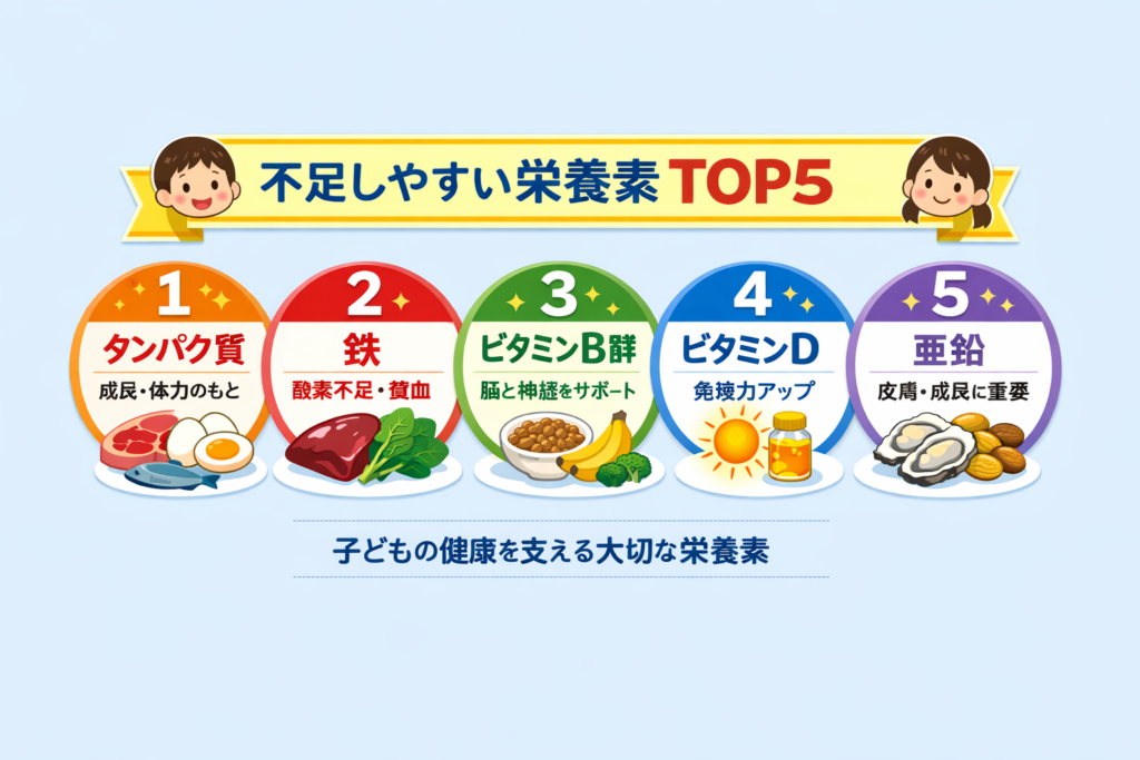 特に現代の子どもは、加工食品・糖質中心の食生活・日光不足などの影響で、これらの栄養素が慢性的に不足しやすい傾向があります。