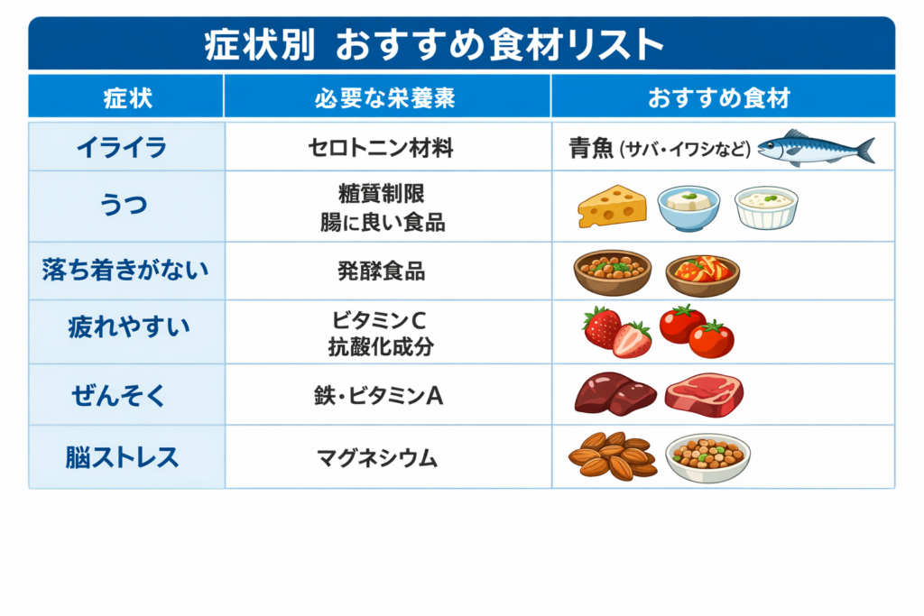ここでは、医師が臨床現場で実際に効果を確認している“症状別のおすすめ食材”をまとめました。